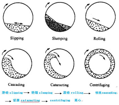 轉(zhuǎn)鼓中顆粒表面因流速不同從上到下可分為 3個(gè)區(qū)域:即稀疏流動(dòng)區(qū)、致密流動(dòng)區(qū)和蠕變區(qū);剪切率的變化對(duì)顆粒流動(dòng)特征和運(yùn)動(dòng)狀態(tài)具有決定性影響;顆粒在轉(zhuǎn)鼓中的運(yùn)動(dòng)有一個(gè)顯著特點(diǎn),即可以大致分為流動(dòng)表層和靜止底層兩個(gè)區(qū)域,將顆粒物質(zhì)從靜止?fàn)顟B(tài)發(fā)展到流動(dòng)、再由流動(dòng)通過(guò)堵塞轉(zhuǎn)變?yōu)殪o止的全過(guò)程地統(tǒng)一起來(lái)。通過(guò)調(diào)節(jié)轉(zhuǎn)鼓的旋轉(zhuǎn)速度,可獲得顆粒的流動(dòng)過(guò)程與流動(dòng)狀態(tài).
