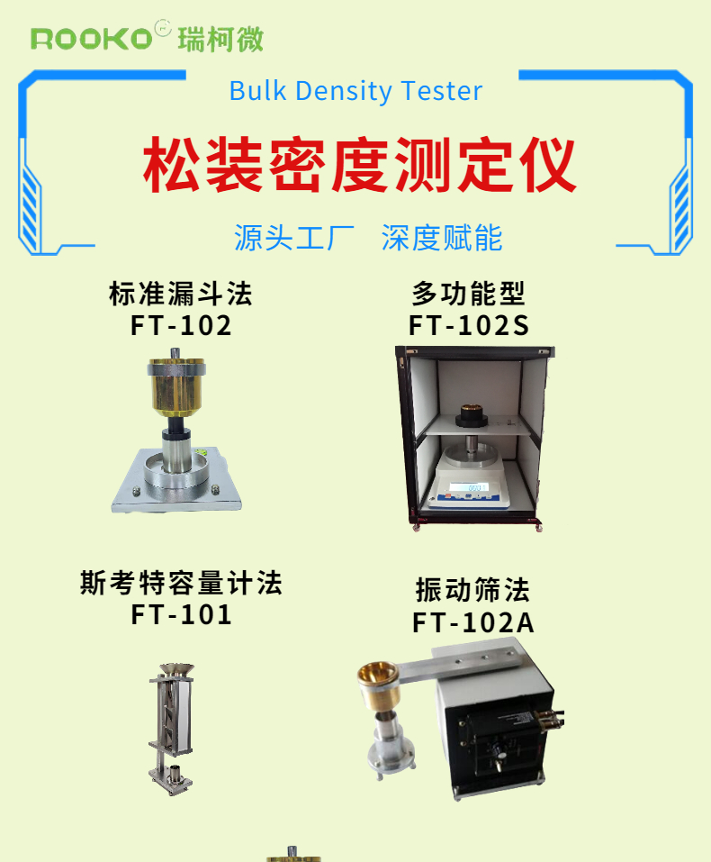 粉末的松裝密度除了取決于原料的密度外,很大程度上與粉末顆粒的形狀、粒度與粒度分布、粉末顆粒的表面狀態等因素相關。形狀不規則的粉末比形狀規則的粉末松裝密度儀小;粉末的形狀越不規則,松裝密度儀越低。原因之一是:因為粉末越不規則,其比表面越大,顆粒間的摩擦力越大,因而松裝密度儀較低; 同樣,粉末顆粒越小其比表面越大,所以較細的粉末松狀密度就越低。