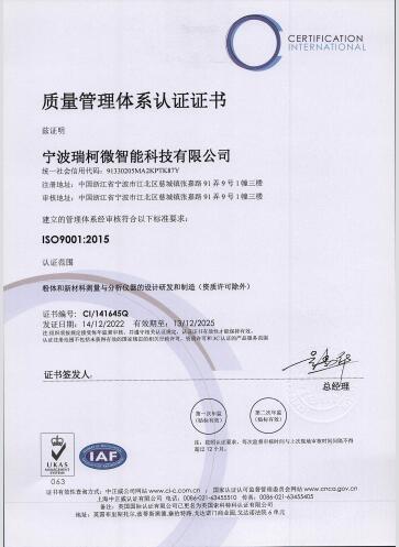 祝賀寧波瑞柯微智能科技有限公司通過ISO9001認證