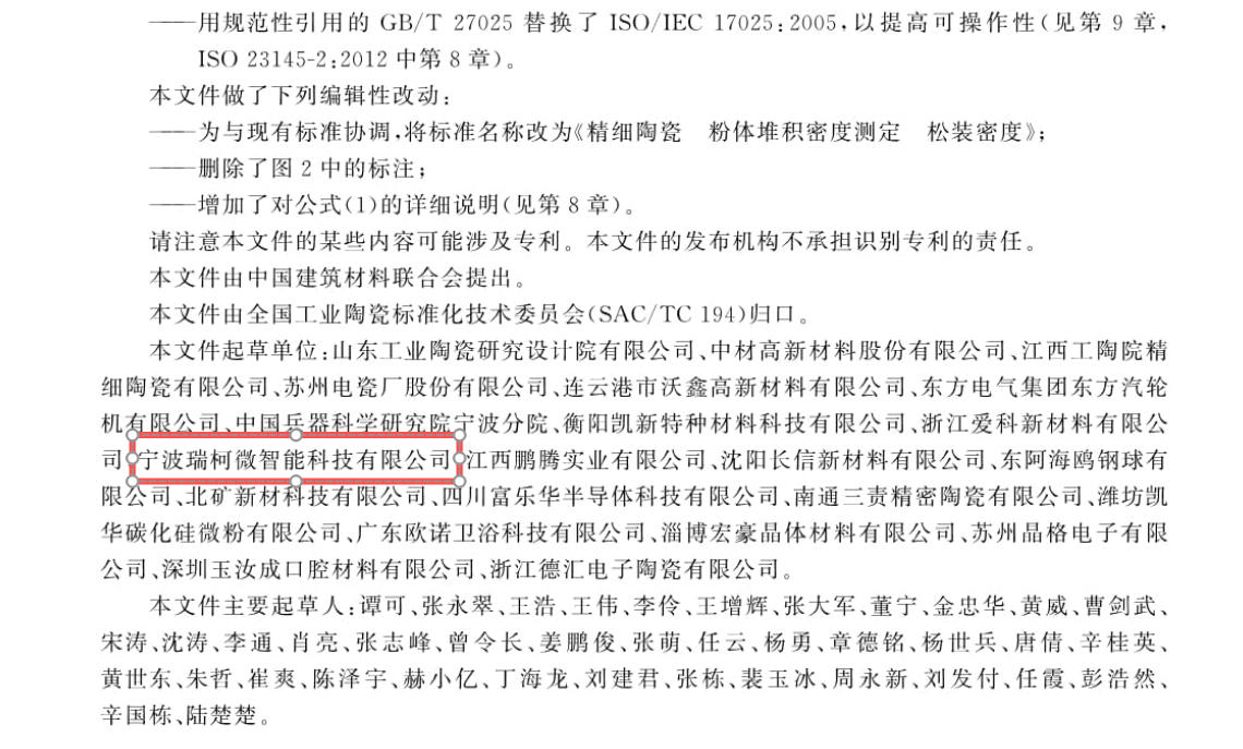此后數(shù)年,瑞柯微在打磨產(chǎn)品的同時(shí),始終關(guān)注行業(yè)標(biāo)準(zhǔn)動(dòng)態(tài)。其研發(fā)的每一款粉體檢測(cè)設(shè)備,都主動(dòng)對(duì)標(biāo)國際 ISO 標(biāo)準(zhǔn)與國內(nèi)行業(yè)規(guī)范,積極參與地方及行業(yè)標(biāo)準(zhǔn)的研討。2023 年,全國工業(yè)陶瓷標(biāo)準(zhǔn)化技術(shù)委員會(huì)啟動(dòng) GB/T 45760-2025 標(biāo)準(zhǔn)制定工作,瑞柯微憑借在粉體流動(dòng)特性檢測(cè)領(lǐng)域的技術(shù)積累與豐富案例,成功入選參編單位,成為為數(shù)不多的民營(yíng)科技企業(yè)代表。