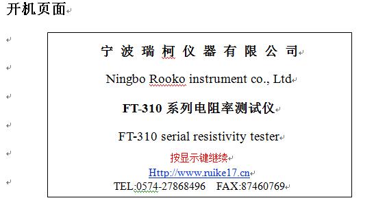 5.顯示:4.3寸液晶屏、直讀電阻值、電阻率、電導率、溫度、電流、電壓等數據