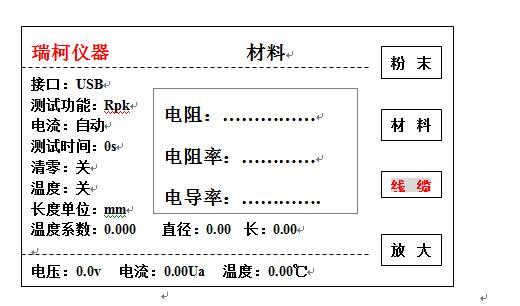 5.顯示:液晶顯示、直讀電阻值、電阻率、電導率、溫度、電流、電壓等數據.