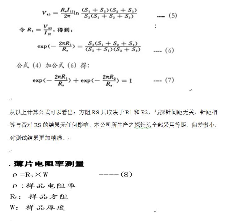 1.雙電測四探針法測試薄層樣品方阻計(jì)算和測試原理如下: