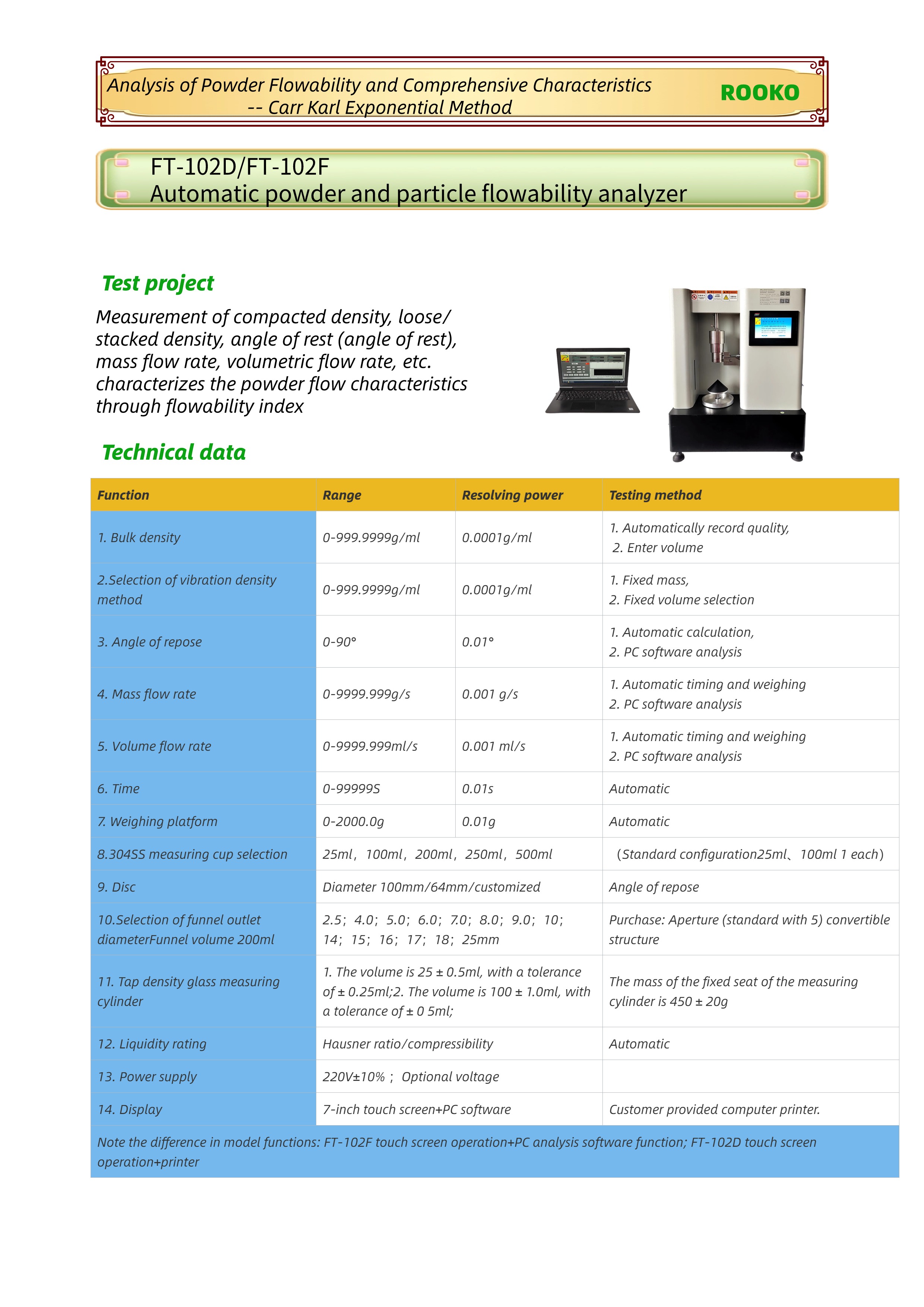 FT-102D/FT-102F自動粉末和顆粒流動性分析儀